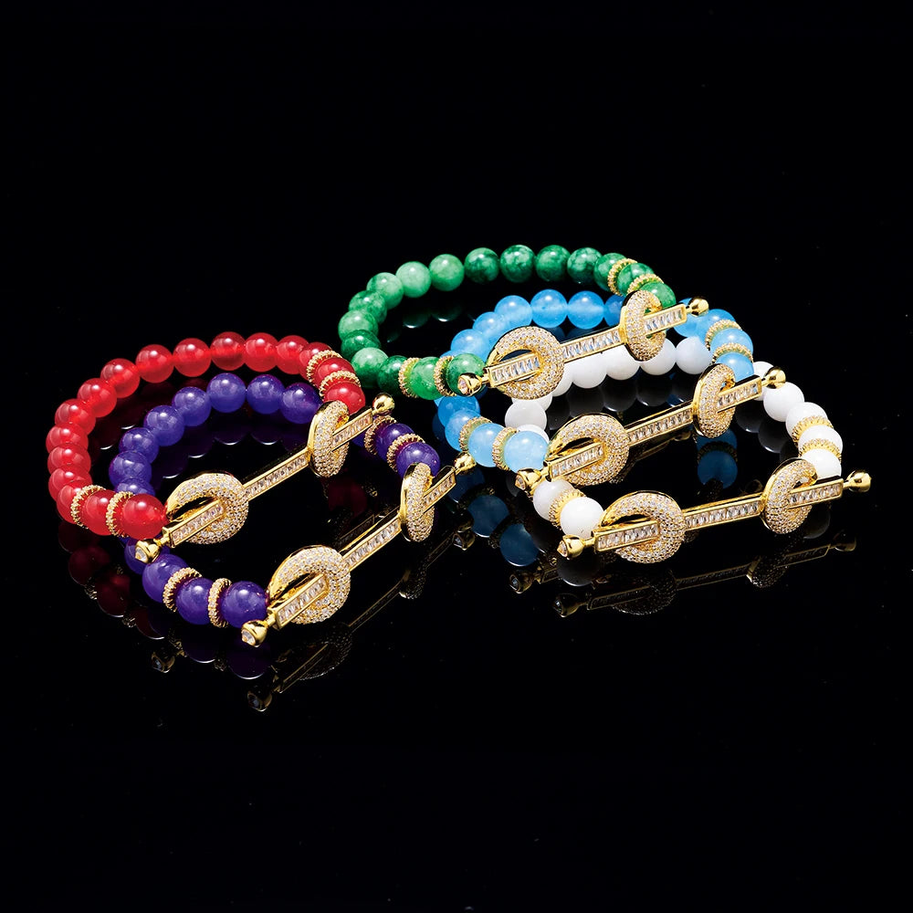 • Gold-Tone CZ Bar Clasp – Sparkling cubic zirconia accents add a refined luxury finish.